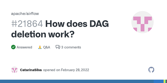 UI/API/CLI를 통해 Dag의 모든 메타데이터를 DB에서 완전히 제거하는 것입니다. DagRun, TaskInstance, XCom 등 관련된 모든 레코드가 삭제됩니다.