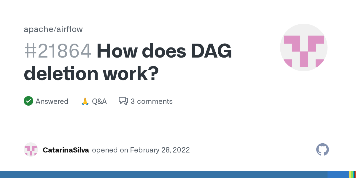 Dag 파일이 DAGS_FOLDER에서 사라졌을 때, 스케줄러가 이를 감지하고 is_stale = True로 표시합니다. 이것은 "삭제"가 아닙니다. 메타데이터와 실행 이력이 모두 DB에 남아 있으며, 파일을 다시 넣으면 복구됩니다.