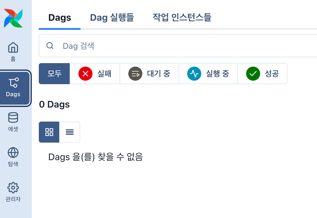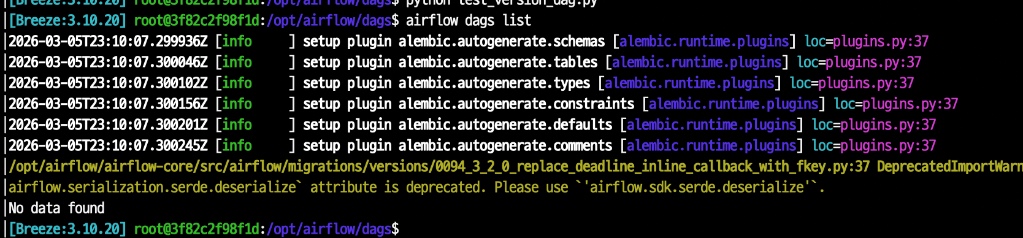 그런데, airflow dags list로 확인해보니 “No data found”가 뜨는것 아닙니까?