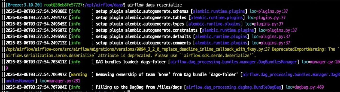 airflow dags reserialize 이걸 사용해봐도 변화가 없었습니다.