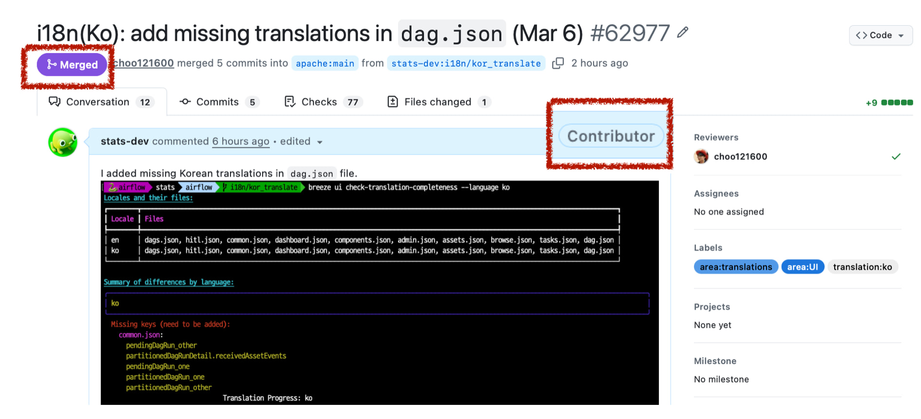 결론적으로, 번역 커밋이 병합되어, airflow 컨트리뷰터가 되었습니다.