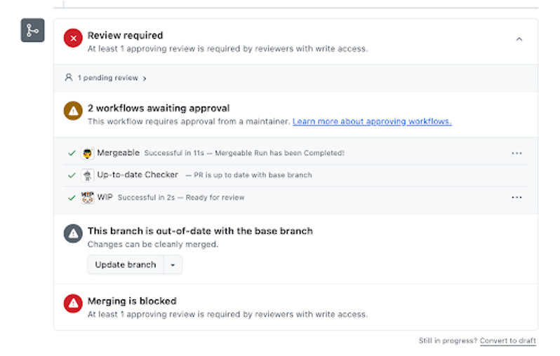 여기서 또 당황한게 push를 하기 전에 계속 갱신되다보니 순간적으로 깃허브 상에서 update branch 버튼을 누릅니다.