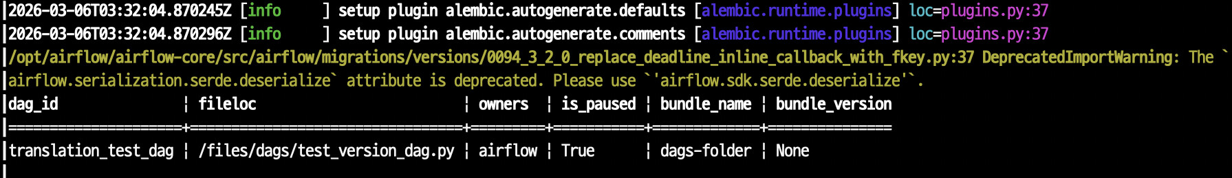 이 그림을 보니, reserialize 실행 로그에서, Airflow는 DAG를 /files/dags 경로에서 가져오고 있습니다. (Filling up the DagBag from /files/dags)