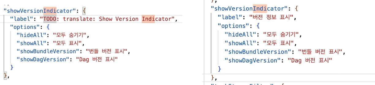 Show Indicator Version을 버전 정보 표시로 번역했으나, 정보라기에는 Information과 좀 다른 어감이 있고, 리뷰어 분의 의견도 유사했습니다.