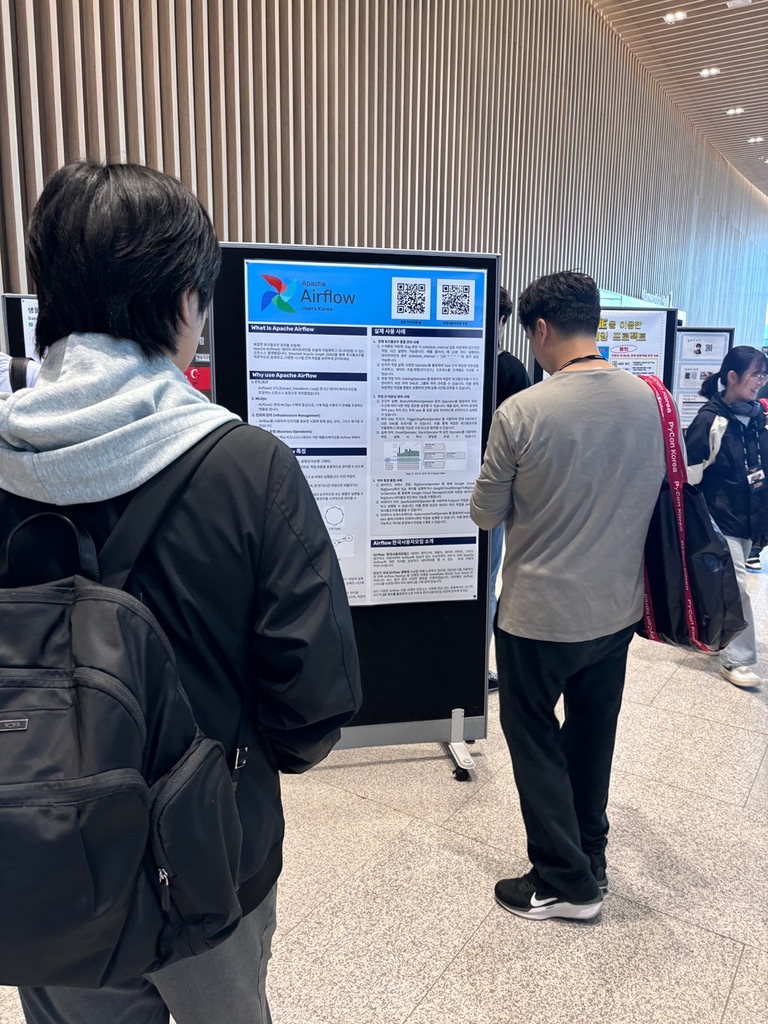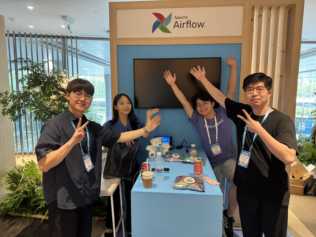 PyCon Korea 준비위원회에 계신 이준원 님(@cpprhtn)을 통해, Python과 밀접한 관계에 있는 Airflow 커뮤니티도 2024년도 포스터 세션을 시작으로 2025년부터 후원 커뮤니티로 참여하여 부스를 운영하고 있습니다.