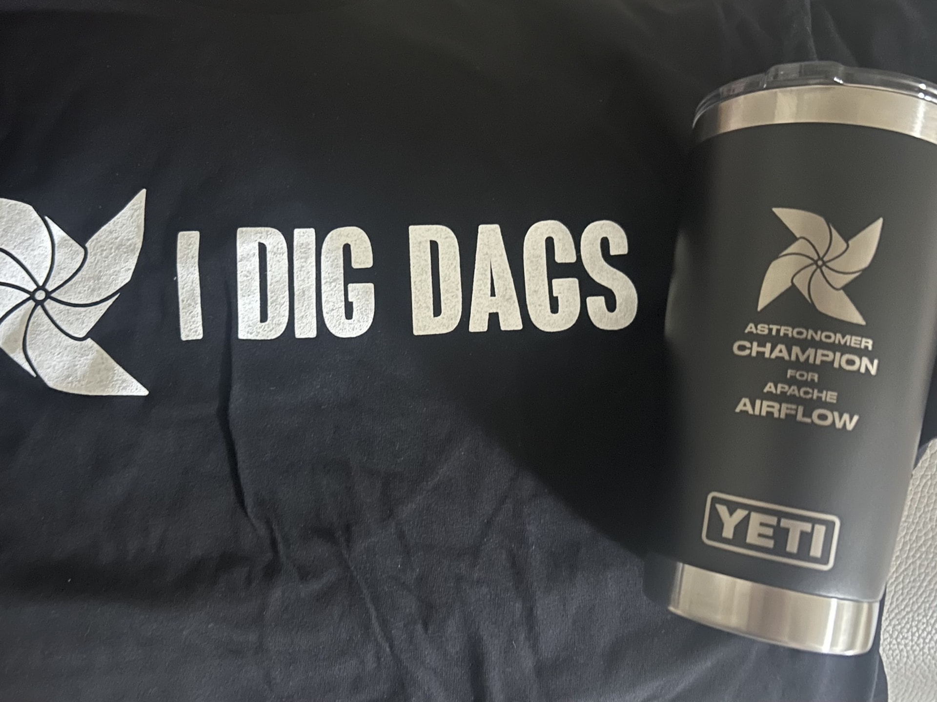 작년에 Astronomer Airflow 챔피언에 선정되면서 SWAG를 준다고 하셔서 뭔가 오겠거니 하고 있었는데, 어쩌다 보니 선정되자마자 챔피언 중 1위를 하게 되어 티셔츠도 받았습니다 ㅎㅎ