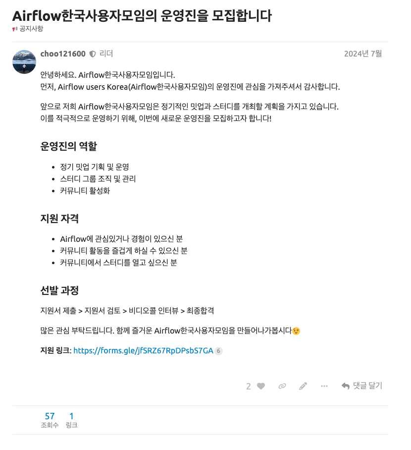 그렇게 2023년 말, Apache Airflow 한국 사용자 모임을 만들게 되었습니다.