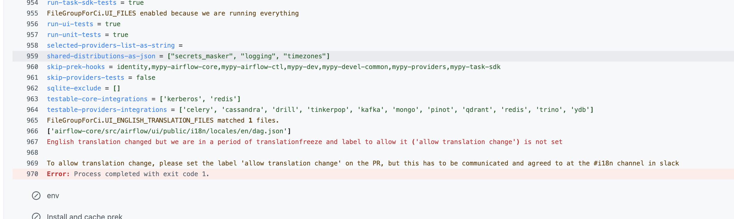 동결 기간 중 영어 번역 파일을 수정해야 할 경우, 반드시 Slack #i18n 채널에서 논의하고, 최소 1명의 PMC 멤버 승인을 받아야 합니다.